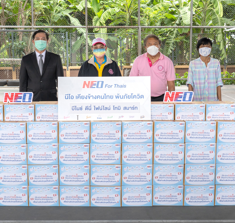 นีโอ ร่วมกับ กระทรวงการพัฒนาสังคมและความมั่นคงของมนุษย์ โดยมีคุณแรมรุ้ง วรวัธ ตำแหน่งรองปลัดกระทรวงการพัฒนาสังคมและความมั่นคงของมนุษย์ เข้าร่วมส่งความห่วงใยจากผู้ร่วมงานนีโอผ่าน “กล่องกำลังใจนีโอ” รวมจำนวน 300 กล่อง ที่บรรจุผลิตภัณฑ์ทำความสะอาดในเครือนีโอไว้อย่างครบครัน ให้แก่ชุมชนคลองขวาง พระราม 3 เพื่อร่วมเป็นส่วนหนึ่งในการส่งกำลังใจให้ทุกท่านรักษาสุขอนามัย ผ่านพ้นวิกฤตนี้ไปด้วยกัน